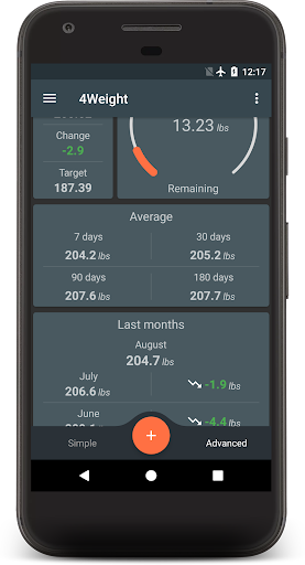 4Weight is a weight control app that offers simple and advanced features for weight tracking. It helps you monitor your weight with just one touch per day. The app has an easy-to-use interface with necessary functions. It supports both losing and gaining weight. You can also track your ideal weight with Body Mass Index (BMI) calculations, which tell you if you are overweight, underweight, or normal. The app also helps you calculate the number of calories, proteins, and carbohydrates you need to lose, gain, or maintain weight. It allows you to find out your body fat percentage using BMI based or body measurements methods. You can set goals and track your progress, as well as switch between different app themes and measurement systems. The app also provides charts to analyze your weight history and offers data backup and restore features.